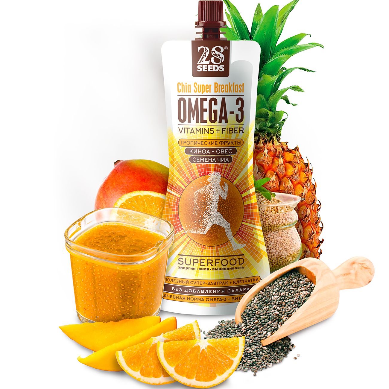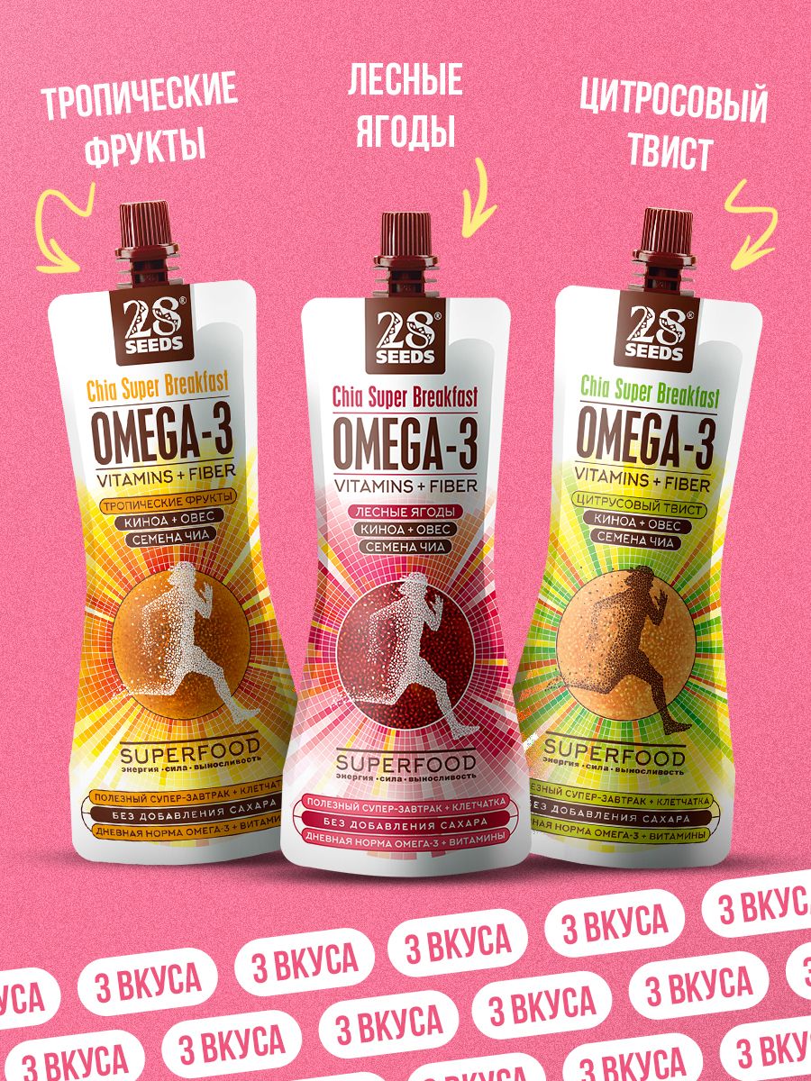 Магия семян чиа: в 8 раз больше Омега-3, чем в лососе; в 7 раз больше Антиоксидантов, чем в апельсинах; в 3 раза больше протеина, чем в фасоли; в 3 раза больше клетчатки, чем в овсе.