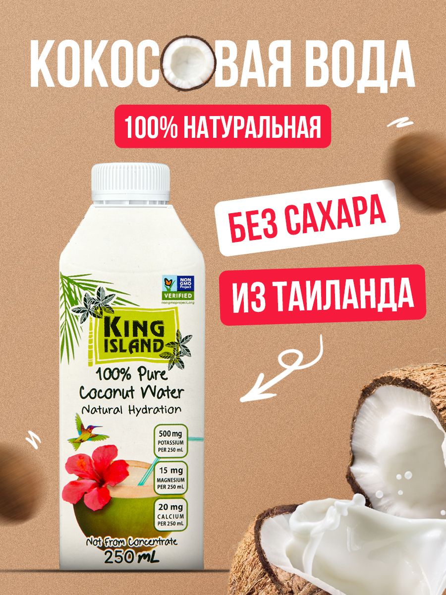 Кокосовая вода – природный изотонический напиток, насыщающий кислородом все клетки организма, улучшающий обмен веществ, содействующий снижению веса, поднимающий иммунитет, способствующий нормализации уровня сахара в крови. Полезен при борьбе с вирусами, в т.ч. герпеса, гриппа и др. Натуральный источник минералов, содержит натрий, кальций, железо, магний, фосфор, медь, калий, селен, марганец, цинк, глюкозу, а так же витамины: С, В-6,В-12, рибофлавин, ниацин, тиамин, пиридоксин, холин, фолаты.