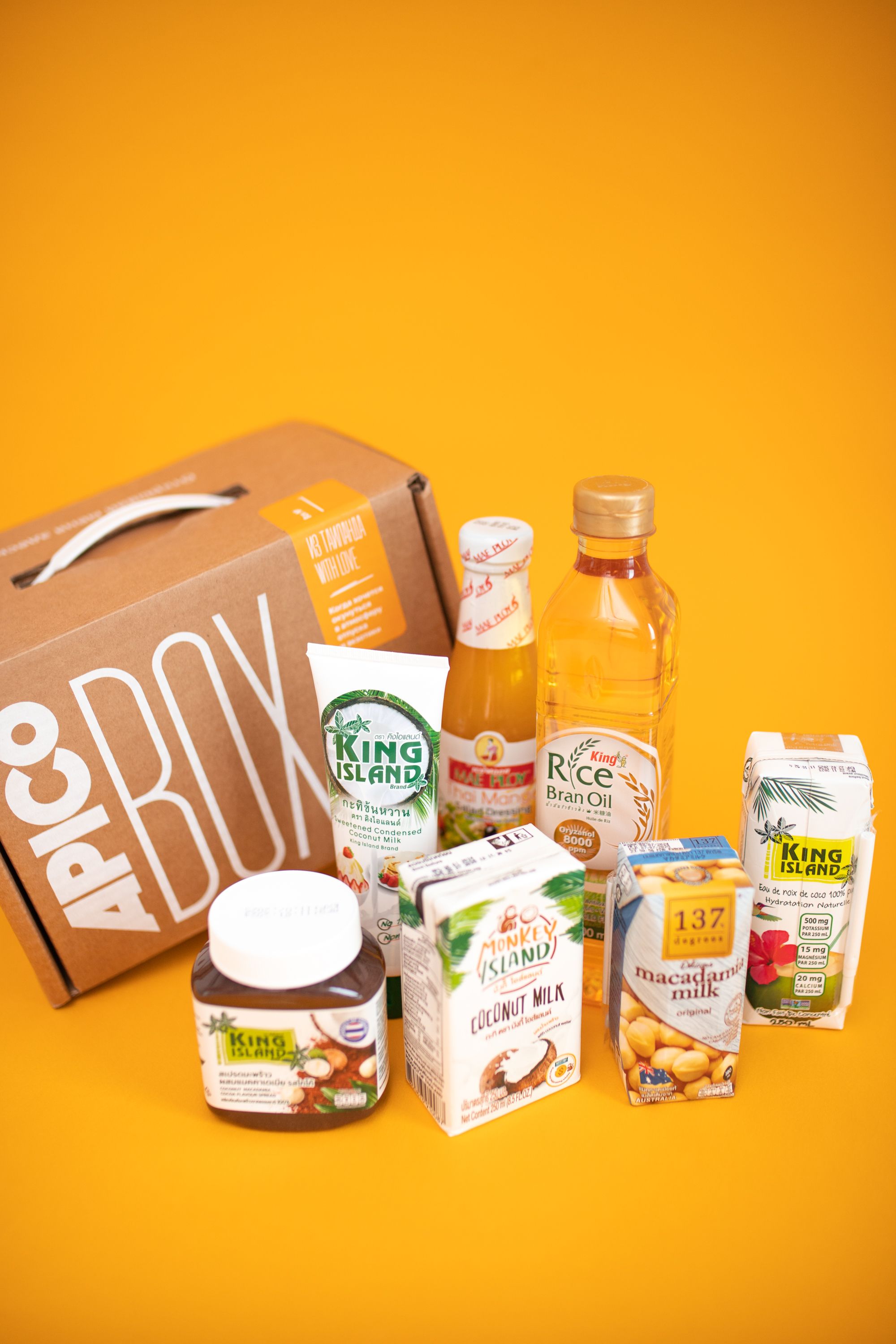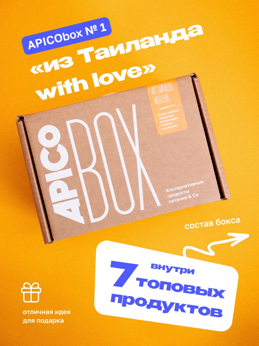 Привет! Я подарочный набор APICO BOX. Я помогаю не тратить время на поиск интересных, вкусных и полезных продуктов. Они уже собраны специально для тебя.APICO BOX №1 «Ит Таиланда with love» - это набор из семи топовых тайских продуктов, которые наиболее популярны среди покупателей. Помимо потрясающего вкуса они обладают полезными свойствами и отличными составами. Попробуйте обязательно – они вас точно не оставят равнодушными! Проверено сотнями покупательских отзывов. В состав этого набора входят:1.Масло рисовых отрубей Rice Bran Oil, 500 мл 2.Тайский манго соус MAE PLOY, 285 мл3.Кокосовая сгущенка KING ISLAND на основе кокосовой мякоти, 180 г 4.Кокосовое молоко Monkey Island из мякоти спелого кокоса, 250 мл 5.Шоколадная паста с орехом макадамия и кокосом King Island, 290 г 6.Кокосовая вода KING ISLAND, 250 мл 7.Растительный напиток на основе ореха макадамия c витаминами и кальцием 137 Degrees, 180 млAPICO BOX – это отличная идея для подарка себе, своим близким, друзьям или знакомым. Можно выбрать любой из предложенных вариантов и не сомневаться в качестве и вкусе продуктов. Приятного аппетита! И не забудь познакомиться со всеми APICO BOXами:APICO BOX №1 «Ит Таиланда with love»APICO BOX №2 «VEGALIZE»APICO BOX №3 «Том Ям Lovers club»APICO BOX №4 «Coconut addicted»APICO BOX №5 «Без сахара»APICO BOX №6 «Без глютена»APICO BOX №7 «Из Сибири с любовью»APICO BOX №8 «Ассорти тайских соусов»APICO BOX №9 «Смузимания»