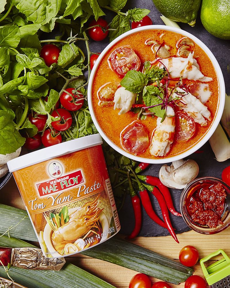 Паста Том Ям «Mae Ploy» - это идеальная основа для приготовления традиционного тайского супа Том Ям. С ее помощью вы сможете легко приготовить этот популярный суп с ярким и изысканным вкусом. Просто добавьте пасту к кипящему бульону, дайте ей раскрыться и насладитесь ароматом и вкусом подлинного том яма.