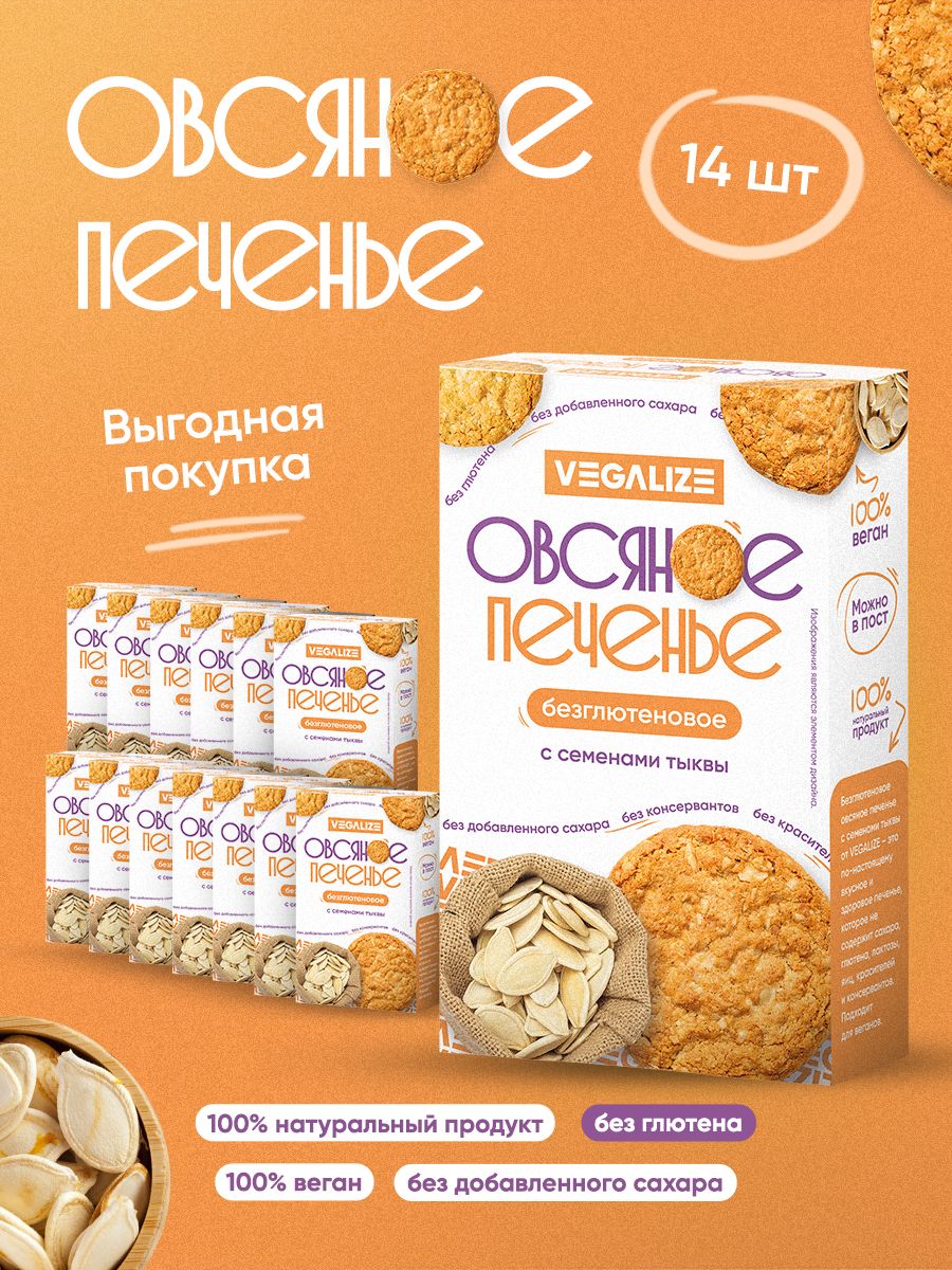 Классическое безглютеновое овсяное печенье от VEGALIZE - это по-настоящему вкусное и здоровое печенье, которое не содержит сахара, глютена, лактозы, яиц, красителей и консервантов. Подходит для веганов. Здоровье, польза и красота в каждой пачке.