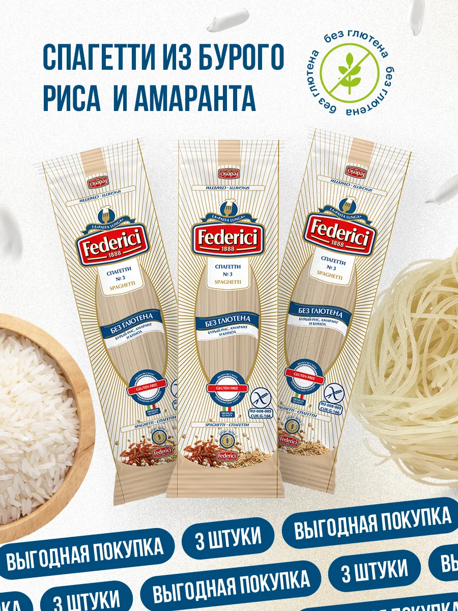 Спагетти без глютена из бурого риса и амаранта Federici, 250 г-здоровое питание в итальянском стиле