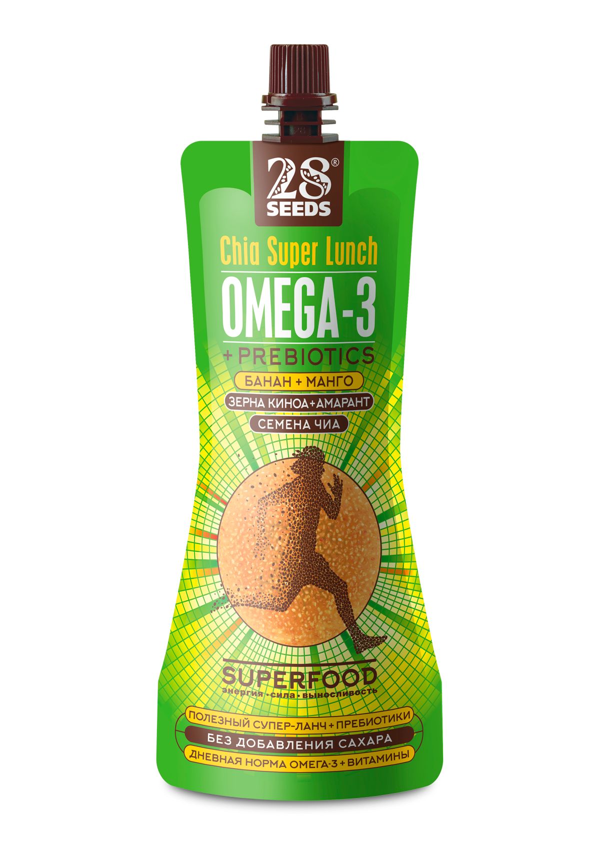 Продолжите Ваш лучший день с нашими полезными и питательными Супер-ланчами смузи с чемпионским трио растительных пребиотиков: чиа, киноа, амарант, дополненной здоровой энергией ягод и фруктов. Один пакет содержит дневную норму ОМЕГА3, а также ОМЕГА6, клетчатку, протеин, витамины, без сахара.