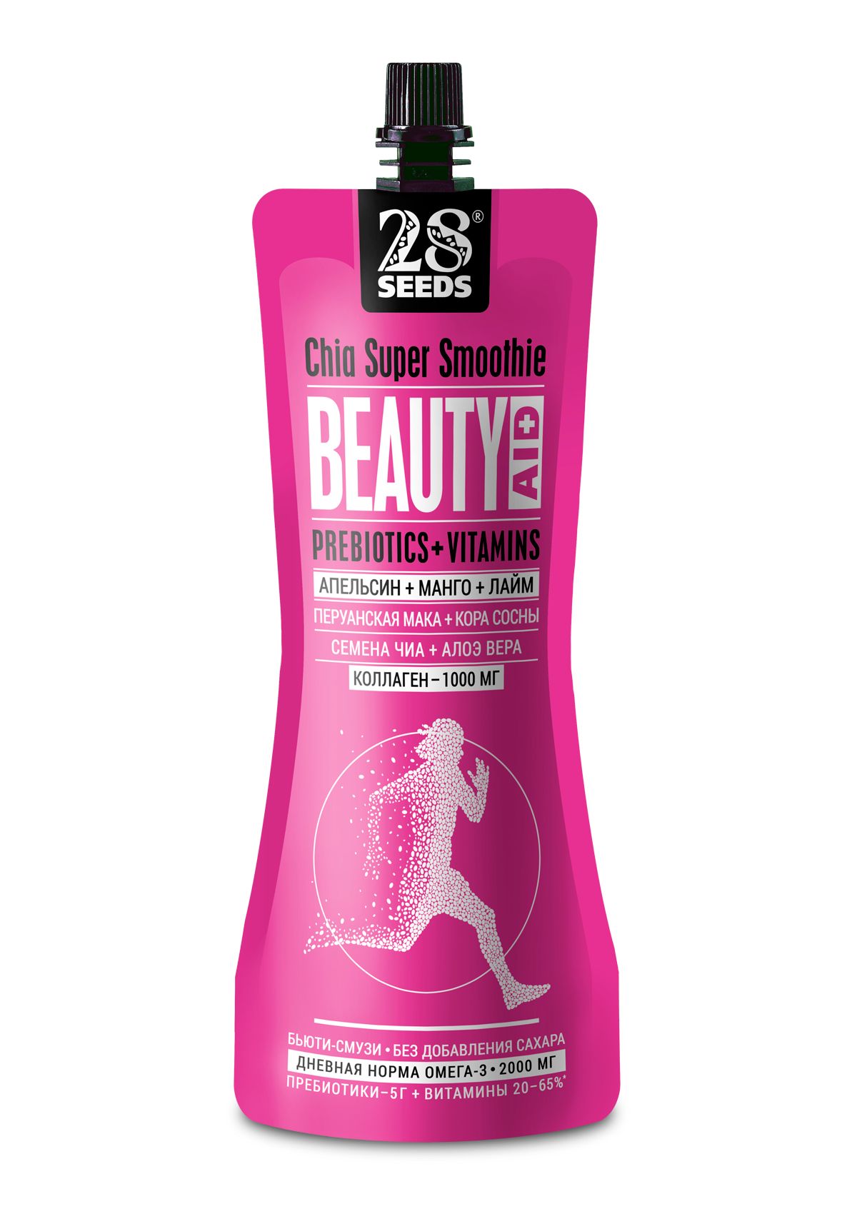 Комплекс натуральных ингредиентов способствует омоложению кожи и всех тканей организма, волос, ногтей, придает зубам и костям прочность, помогает поддерживать гормональный баланс и повышает общий тонус, энергетик без сахара. Один пакет смузи без сахара содержит Омега 3, клетчастку и протеины, а также другие полезные ингредиенты: коллаген, мака перуанская, кора сосны, алоэ вера, чиа