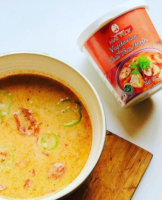 1. Возьмите 50 г пасты Том Ям и растворите ее в 600 мл кипятка или любого овощного бульона.