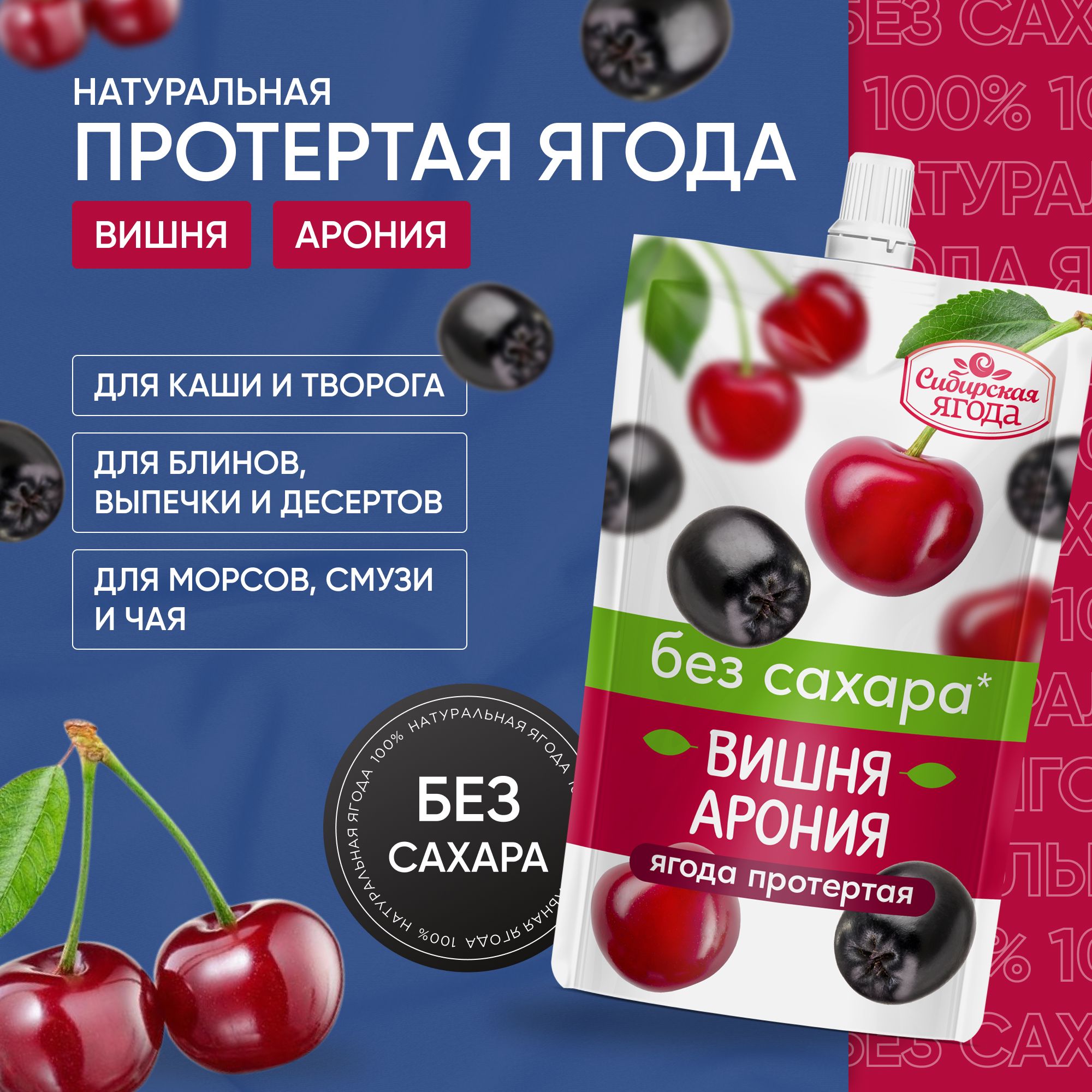 Протертая ягода - это продукт, в котором сочетается натуральная польза и свежесть ягод и фрукт. Натуральное ягодное пюре без добавления сахара, консервантов и загустителей. Джем сохраняет естественный вкус и аромат ягод. Он идеально дополнит завтрак и чаепитие, станет яркой добавкой к вашим любимым блюдам. Без сахара — подходит для тех, кто следит за потреблением сахара или придерживается диеты. Варенье без сахара используют в каши, йогурты, выпечку, соусы, детское питание и десерты. Удобная текстура — готово к использованию, не нужно измельчать или протирать. Джем без сахара низкокалорийный имеет абсолютно натуральный состав, не содержит сахара, поэтому менее калорийный по сравнению с аналогами.